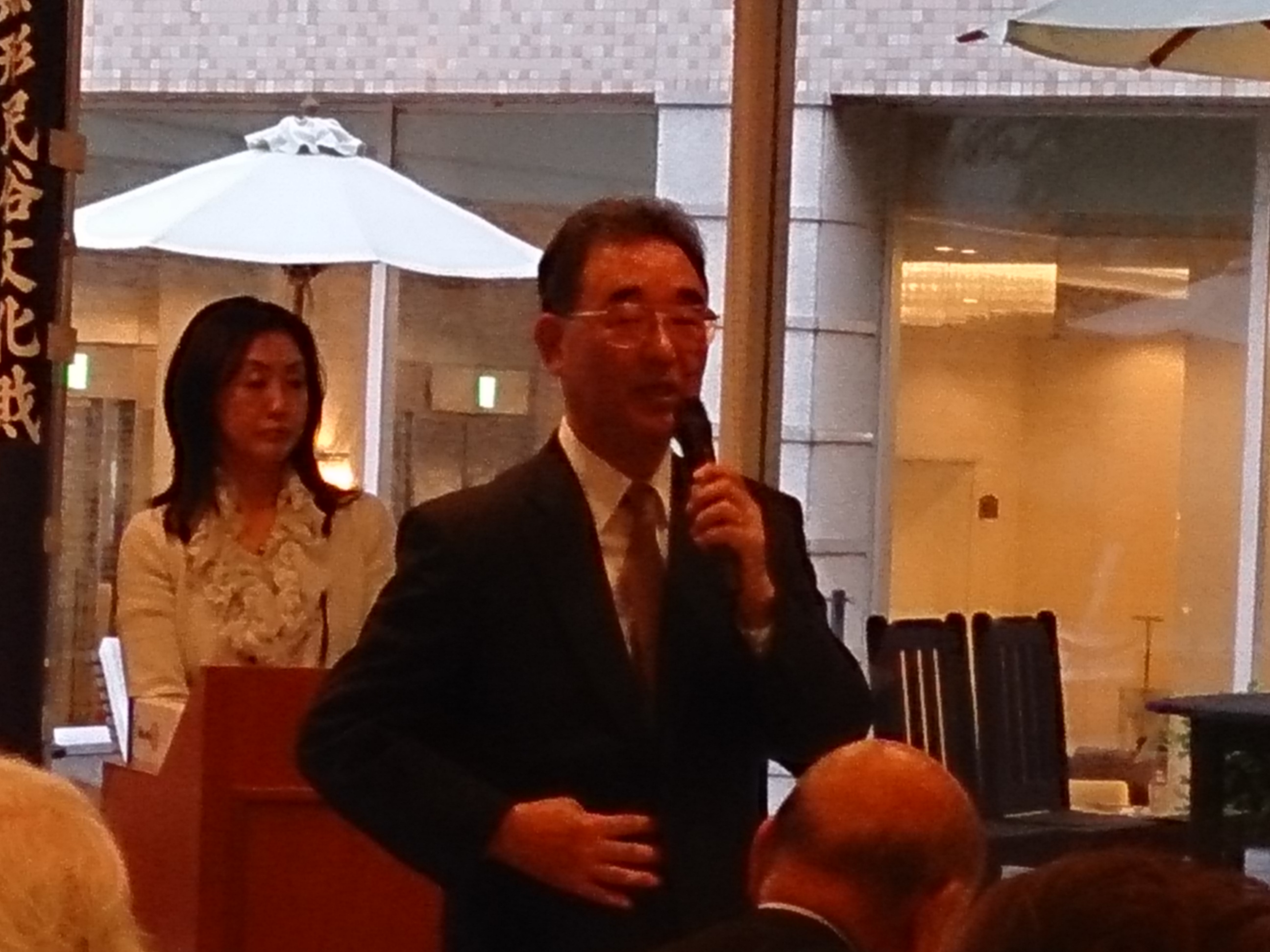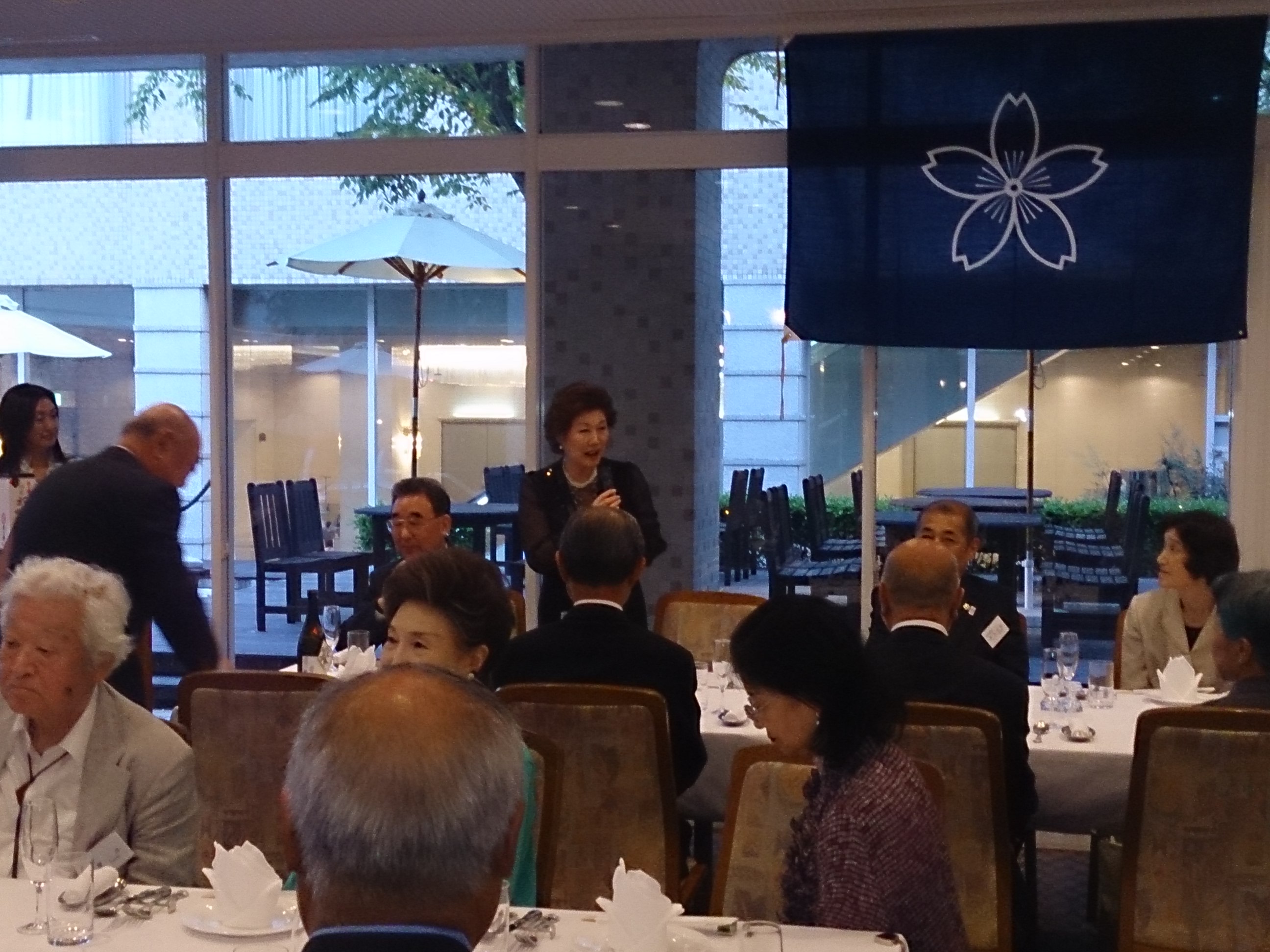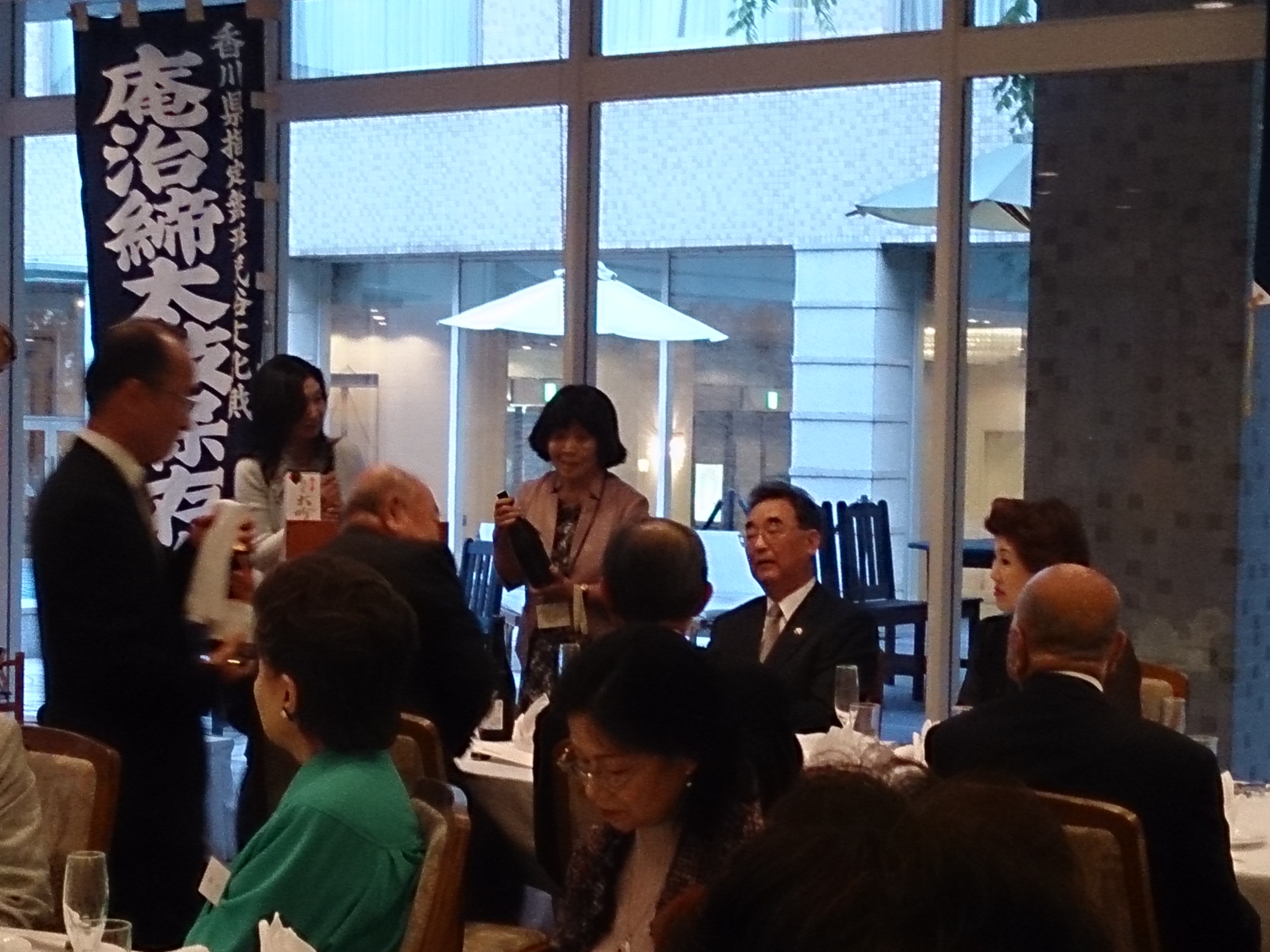 旅行会会長そして池坊様のスピーチをいただき、香川桜友会から歓迎のあいさつに続き、大吟醸で乾杯!
