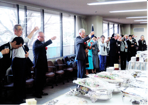 2015.03.08 本部行事:卒業生催事・イベント #組織 昭和32年女子短期大学、昭和34年大学卒業57周年、55周年合同同窓会のご報告 昭和32年女子短期大学、昭和34年大学の卒業生による、卒業57周年、55周年合同同窓会が、3月28日(土)に学習院創立百周年記念会館で開催されました。1959年に卒業57周年、55周年記念の会を開催して以来、5年毎の同窓会を開いてきたこの会は、今回が7回目になりました。今回は内藤学習院院長、桜友会内藤会長のご出席を戴き、出席した120名が、会場の窓から眺められる満開の桜を愛でながら、5年ぶりの再会を喜び合いました。現役応援団とともに院歌の斉唱をして会は終わりましたが、終了後も三々五々、構内の満開の桜を鑑賞しながら、お互いの健康と再会を期待し帰途につきました。