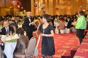 570余名もの皆様にお集まり頂き美味しいディナーのあとの恒例<ビンゴ大会>では世代を超えての笑い声と熱気に会場が包まれました。