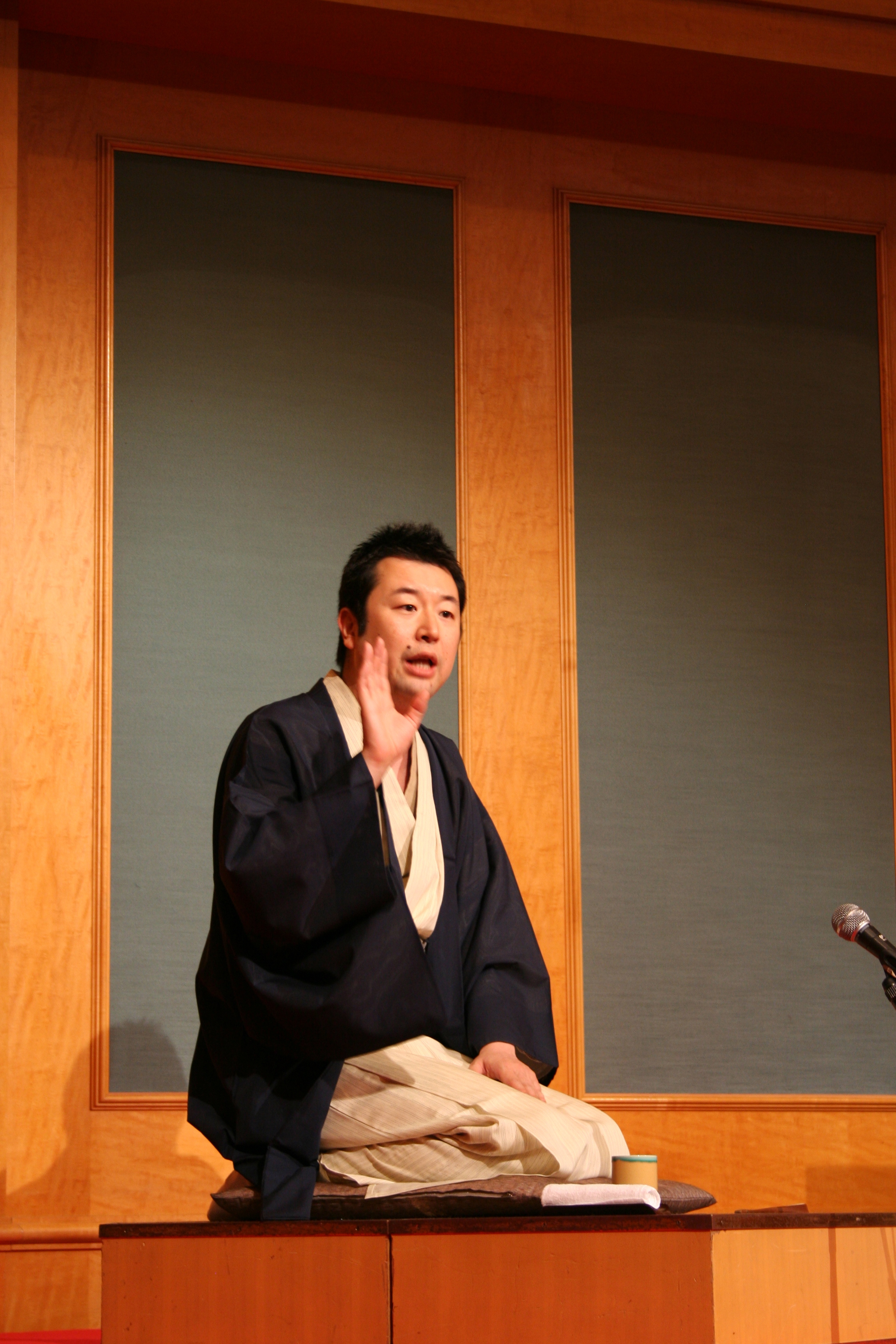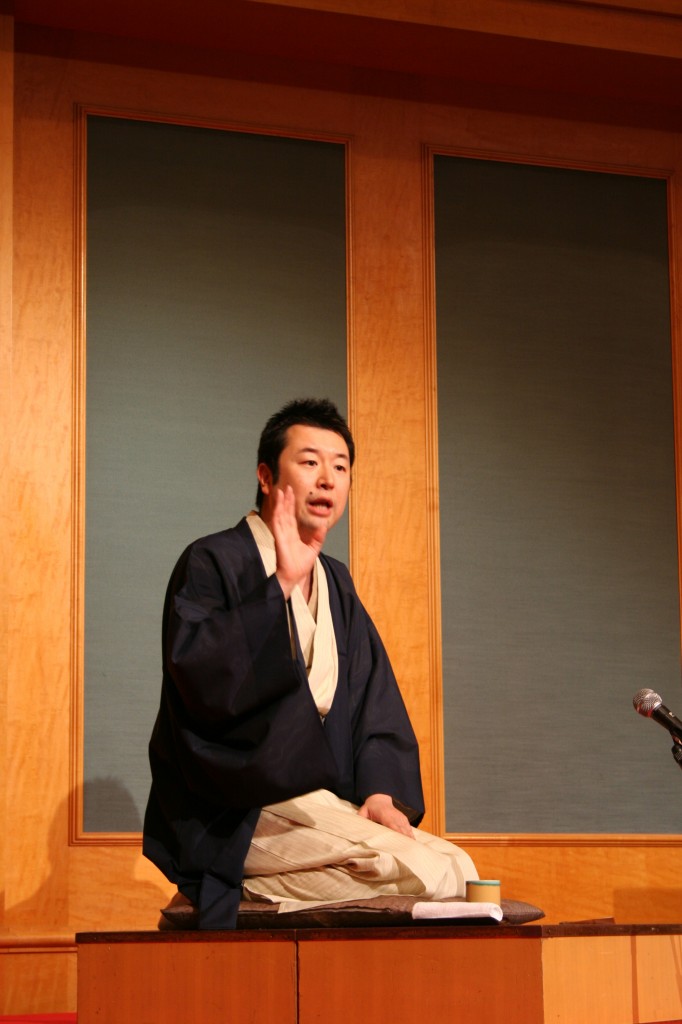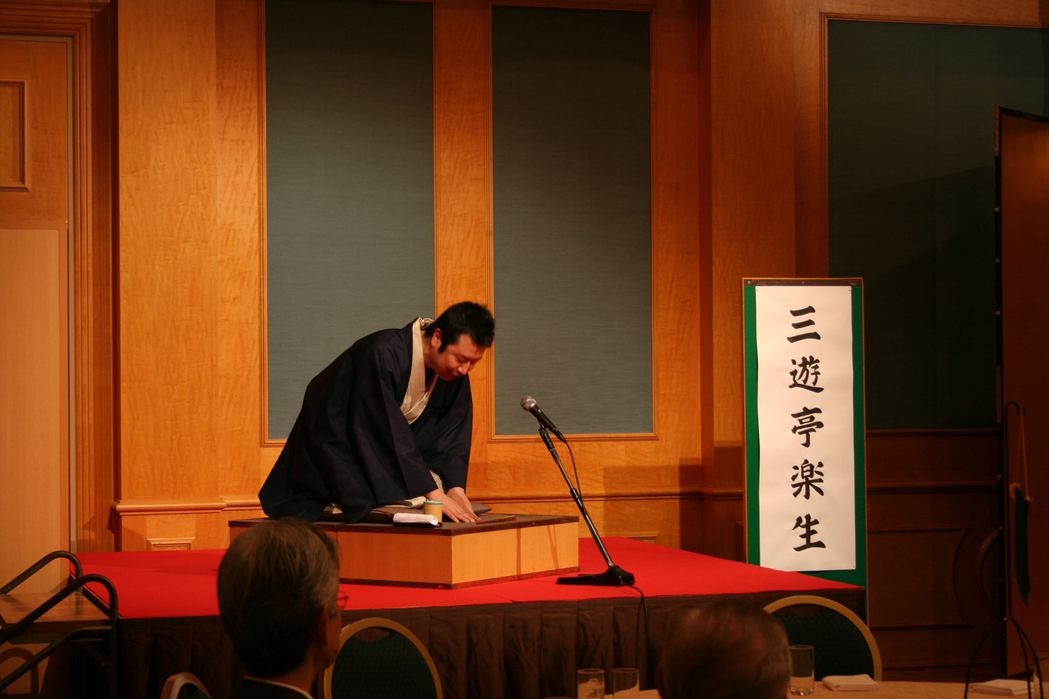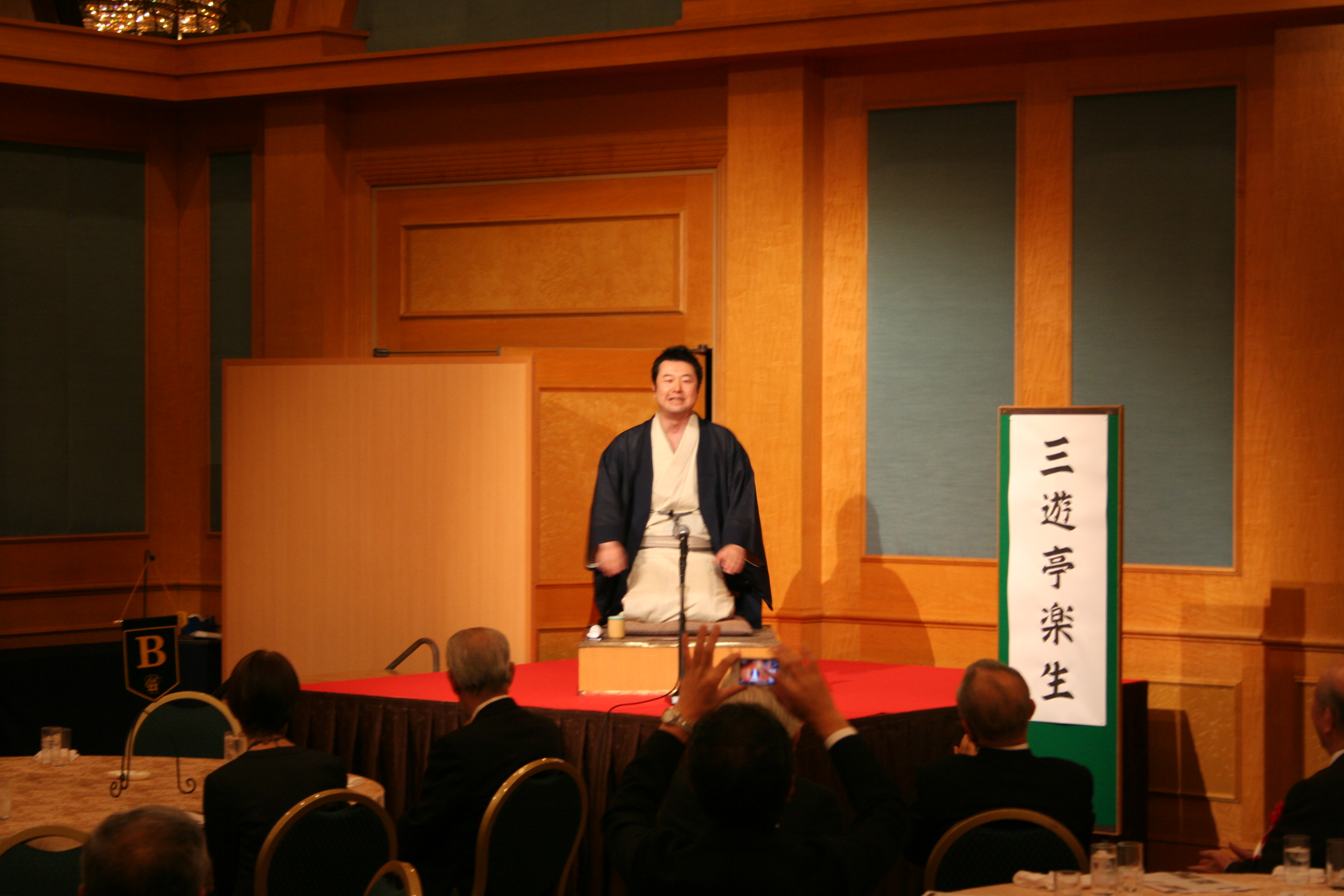 今年のお楽しみは落語会です。児玉洋子幹事より講師のご紹介があり、江東・深川を地盤としてご活躍の三遊亭楽生師匠による落語の一席が披露されました。地元の皆さんの為になるのであればと、師匠のお話も俄然熱の入ったものとなり、会場を笑いの渦に巻き込んで、初めていらした方々の緊張もすっかりほぐれたようでした。