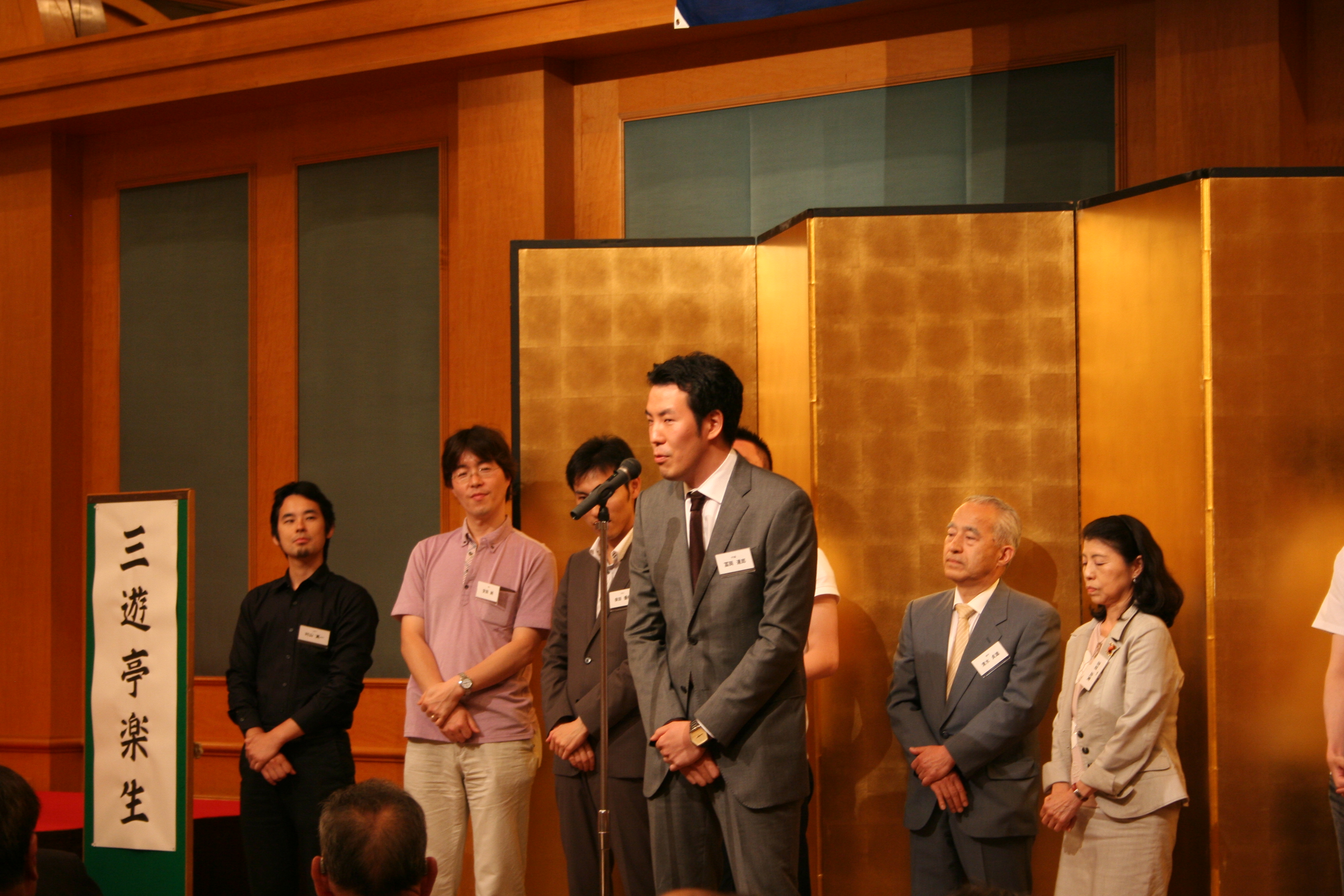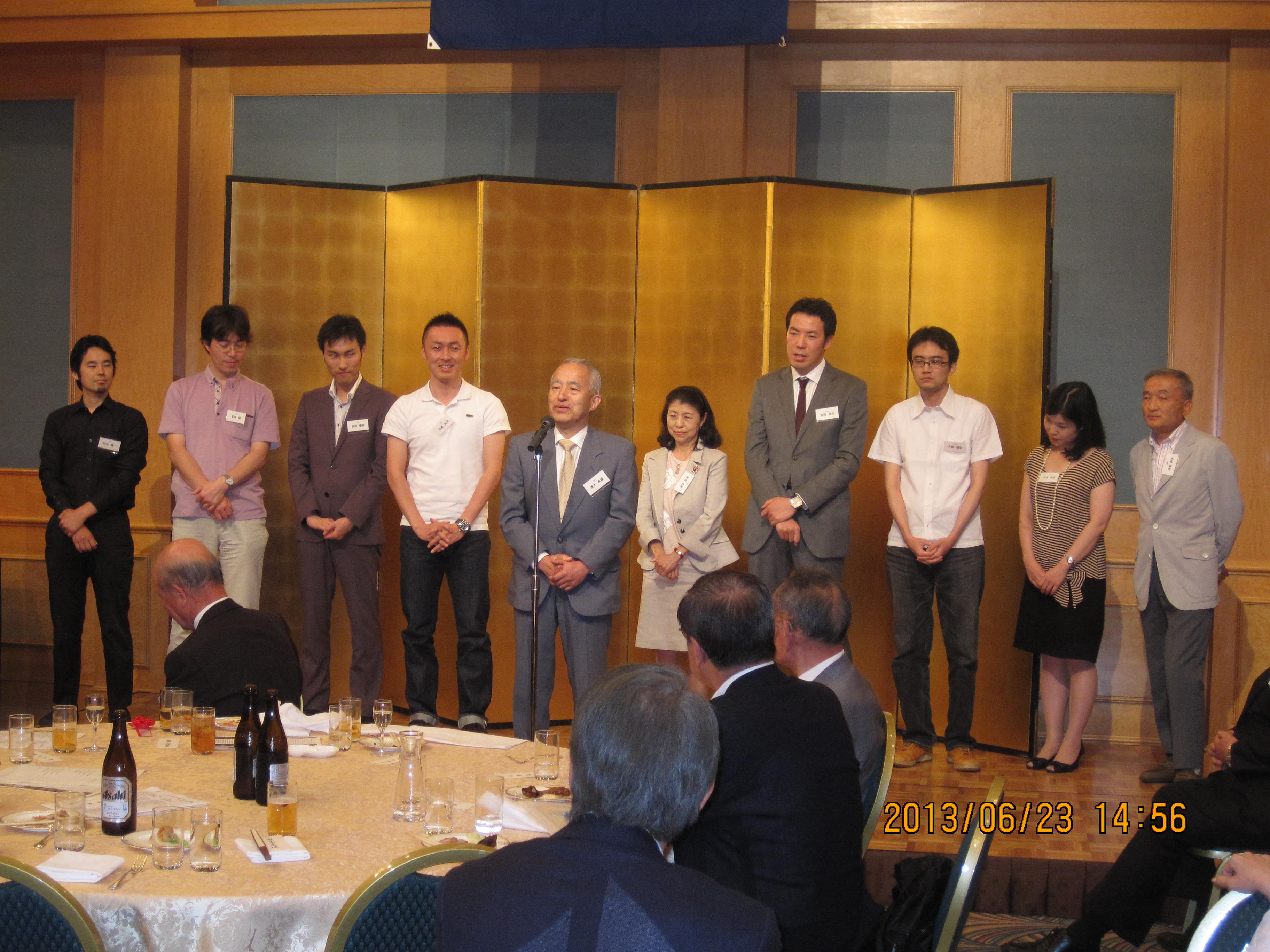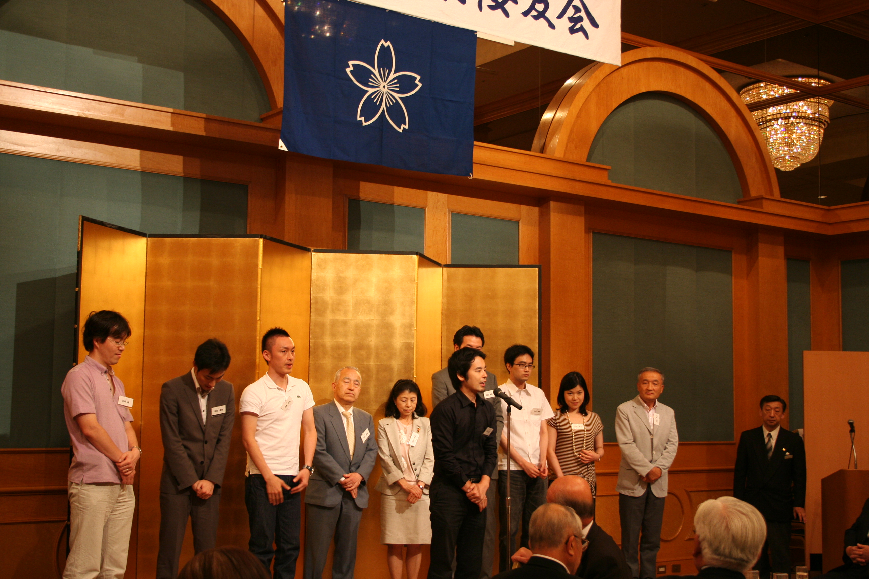 懇親会では、波多野院長、秋山桜友会副会長のご挨拶を頂戴し、小関忠徳名誉会長の名調子の乾杯により開始となりました。 懇親会の後半には、職域桜友を代表して竹田裕彦氏(ユニシスG桜友会会長・当会アドバイザー)の近況報告と、東京6支部代表のご挨拶に続き、新たな仲間14名全員からのスピーチが披露されました。 最後に院歌斉唱、新会員の白鳥大司氏のエールのあと、本間守世副会長による閉会の宣言と三本締めで、会は和やかな内に終了しました。