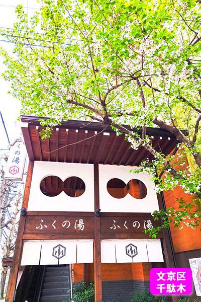 4/7文京区千駄木「ふくの湯」にて撮影、「昼の銭湯を楽しんだ後での桜はまた格別です。」・・・戒田 格(平24仏修)