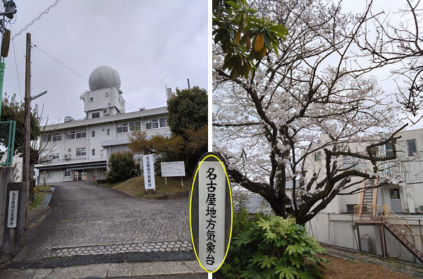 4/5名古屋地方気象台にて撮影、「日本気象学会会員の私。もう何度足を運んだか分からない、名古屋地方気象台敷地内にある標本木を撮影してきました。」・・・加藤伸啓・平12物中退