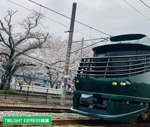 4/5撮影、快晴かつ桜花爛漫の下、京都府綾部市の無人駅高津駅を駆け抜ける“瑞風”を撮影しました。脳梗塞後、長く入院していた京都協立病院の患者さんたちもリハビリで来られていました。私も3か月に一度リハビリ入院してますが次にみるのは新緑を駆け抜ける“瑞風”です。「この“瑞風”で凪の日本海を眺めるのが夢です。」・・・山口秀樹(昭60営)