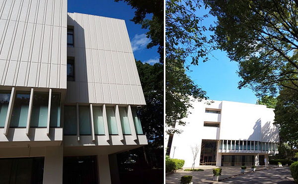 7月に入り、百周年記念会館の外壁改修、屋上、バルコニーの防水改修が始まりました。
