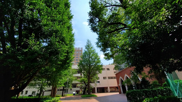すっかり夏の陽射しになりました(北2号館横から)(7/12)