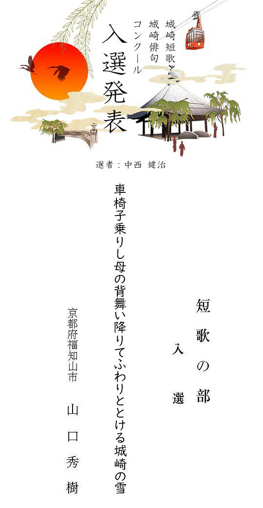「城崎短歌コンクール」5年連続入賞しました。山口秀樹