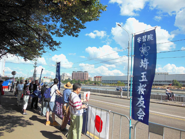 学習院OBである川内優輝選手の応援で、埼玉桜友会と陸上部OBあわせて約20名が