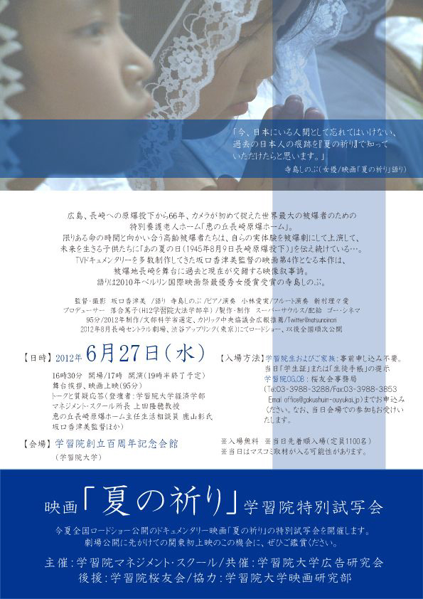 映画「夏の祈り」学習院特別試写会のお知らせ