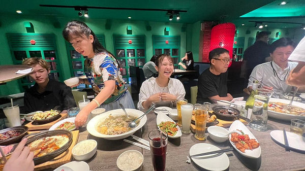 引率教員である私の専門が台湾の環境教育政策であり、大学院時代に研究調査で台湾に滞在した際、台湾桜友会の皆さまから多大な支援を受けていました。昨年度から台湾研修旅行が始まったことを受け、海外で活躍する社会人の方々からお話を伺うことを目的とした夕食会を開いていただいています。昨年度は7名の大学生・短大生、今年度は6名の大学生・短大生が参加しました。