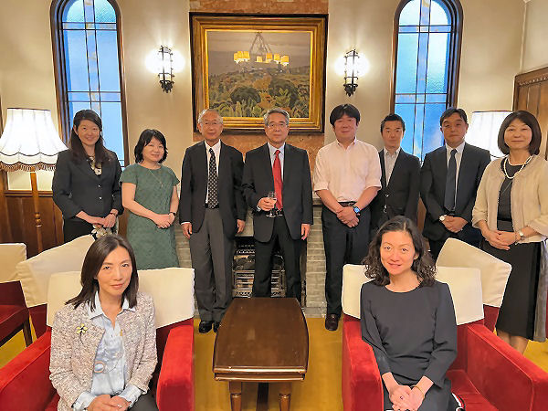 2023年5月26日、ワシントンDC桜友会の世話役であるポール室山さん(昭49修哲)の来日に伴い、日立目白クラブにてワシントンDC桜友会帰国会員とポール室山さんとの懇親会が行われました。日立目白クラブは、大正末期まで近衛公爵邸のあった地に昭和3年、学習院旧制高等科に通う男子生徒の為の寄宿舎、「昭和寮」として竣工され、昭和28年より日立製作所所有、日立目白クラブになりました。目白にありながら、ワシントンを思わせる歴史ある佇まいの洋館内にある応接室での記念撮影や食事、懇談の時間は、あっという間のことでした。帰国後に会員がこうして集まる機会は初めての試みであり、ポール室山さんの来日に合わせて、大出隆さん(昭50政)が事前にこの懇親会を計画して下さいました。お二人を筆頭に、DC桜友会の前世話役である甲良稲子さん(昭57法)、白井晶子さん(昭62女高)、中村かおりさん(平2女高)、今関重明さん(平11修化)、馬場麻衣さん(平9政)、岩井一央さん(平18高)、蛯原久敬(平10済)と桜友会事務局・南部七重さんもご出席下さり、総勢10名でワシントンDC桜友会帰国会員の会が行われました。アットホームな宴の中で、DC滞在中の思い出話や皆様それぞれが近況報告や色々な話題を交える事が出来、実りある会合となりました。その中で、ポールさんが、古い友人でも時々は会って友情と意気を新たにすることが必要だという意味の中国古典を引用下さり、恒例のミニ講義も行われました。帰国してもなお、桜友会を通して、親交を深め合い、お話出来た事は、本当に貴重な場であると感じたと同時に、学習院の絆の強さを再認識する事ができました。ポールさんも年に1回は来日したいとの事でワシントンDC桜友会東京ラウンドも恒例になればと思いました。また、桜友会設立100周年記念の際に贈呈された桜友会旗もわざわざご持参下さり、ご披露頂きました。これからの100年DC桜友会が更なる発展を遂げて行ければと感じる素敵な会となりました。ポールさんがDCに戻られた後、ワシントンでも桜友会が開催されるとの事、その会の盛会を祈念して東京ラウンドは終了となりました。素敵な会の初開催に諸先輩たちのお力あってと感謝すると共に、このご縁を大切にしたいと思っております。米国ワシントンDC、メリーランド州、バージニア州にお住いの方、またご帰国された方もどうぞご連絡下さい。