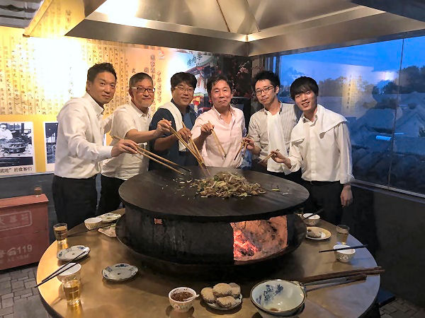 5月21日、故宮の北側の什刹海公園にある蒙古風の羊焼肉の名店「烤肉李」で第2回会合を開催しました【写真上】。第3回会合は7月23日に光華路にあるデンマーク料理屋「藍色人魚」での開催となりました【写真下】。会員数も今回初参加の3名を加え、順調に10名に増え、今回が初中国の方もいれば、留学経験者もいるなど、会員の層も幅広くなってきました。
