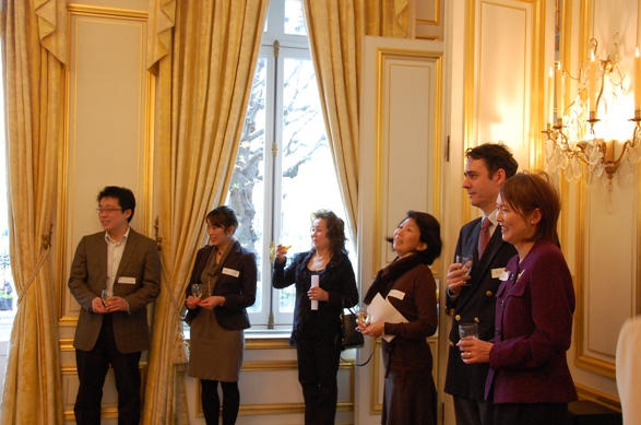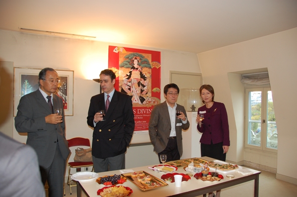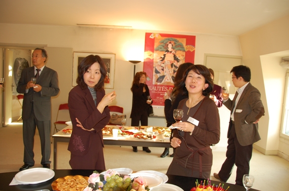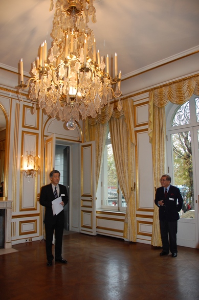会場は、現会長の山田裕隆氏(経57卒)のご厚意により、パリでも最高の立地を誇る「三越エトワール美術館」……窓越しに凱旋門を眺めながら、前回の「居酒屋風」とは打って変って格調の高い会になったことは言うまでもありません。