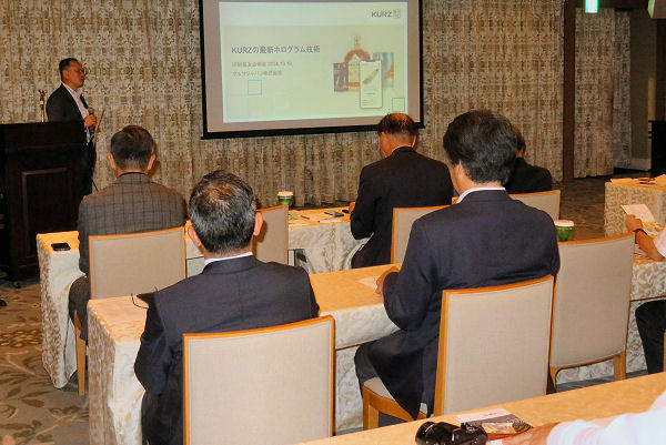 今回の講演はメンバーでもあります、岩井通商株式会社 取締社長 佐藤充氏(1990年高卒)による「最新のホログラム事情」のお話。現在の日本銀行券は佐藤氏の会社がスイスより輸入している機械によって全てホログラム加工が行われております。お札の話ですので公表されている内容ではありますが新札発行までの流れを知ることが出来ました。