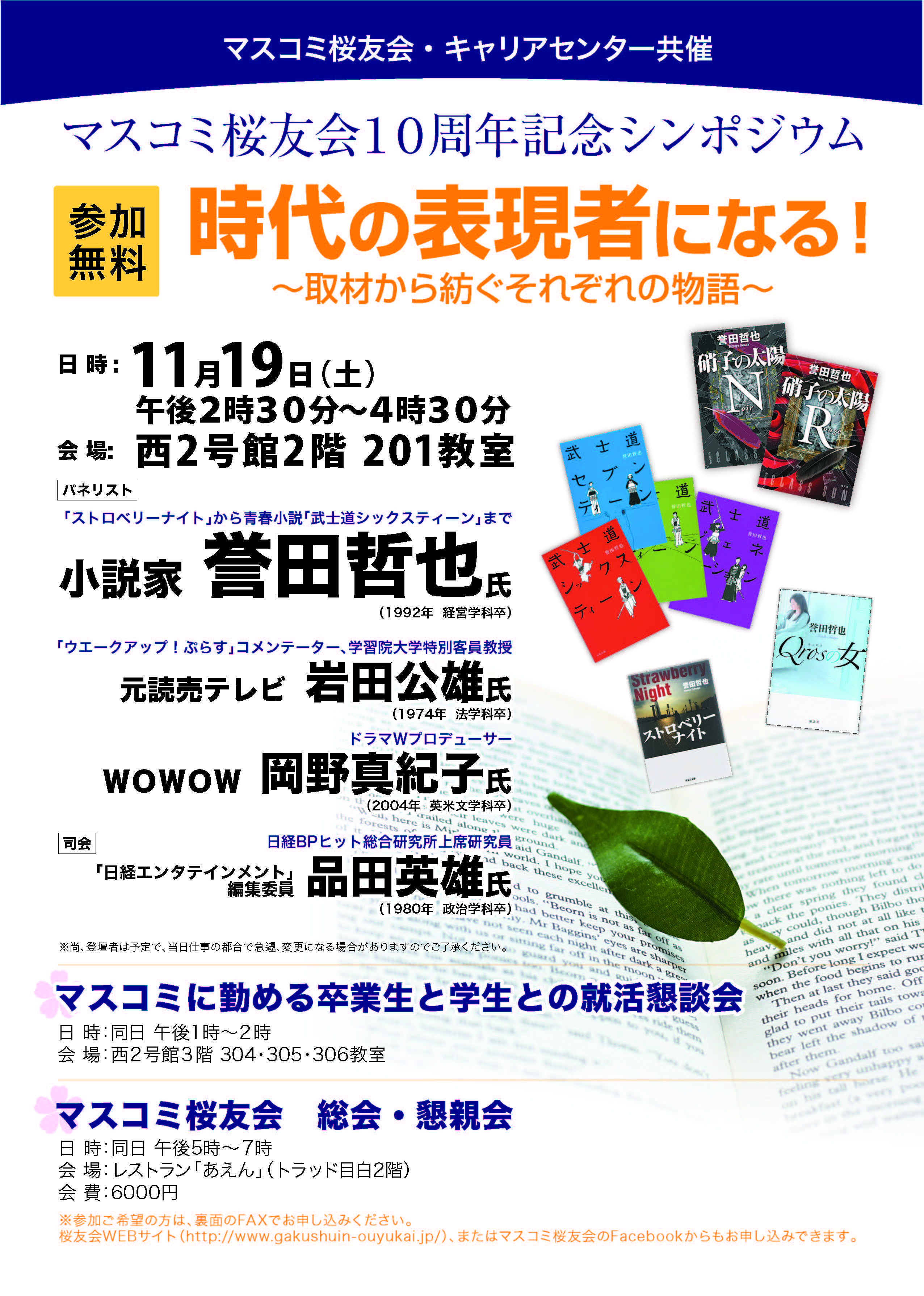 11月19日(土)マスコミ桜友会10周年記念シンポジウム開催のご案内
