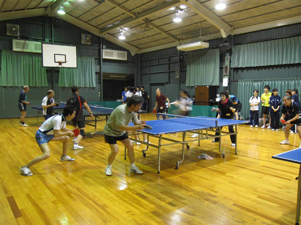 総会に先立ち、大学卓球場においてOBOGの卓球大会が開催され、ダブルス3組、4チームの総当り戦を行いました。甲南大学の在京のOBOGの方々、中等科の卓球部部長の菊地先生にもご参加いただき、和やかな雰囲気の中にも熱い戦いが繰り広げられました。