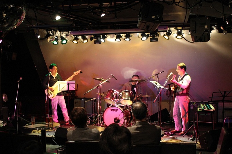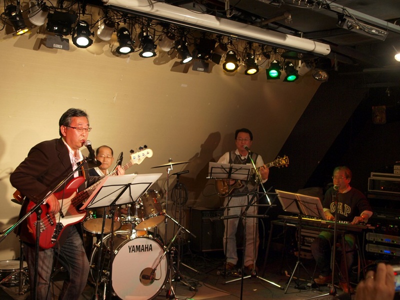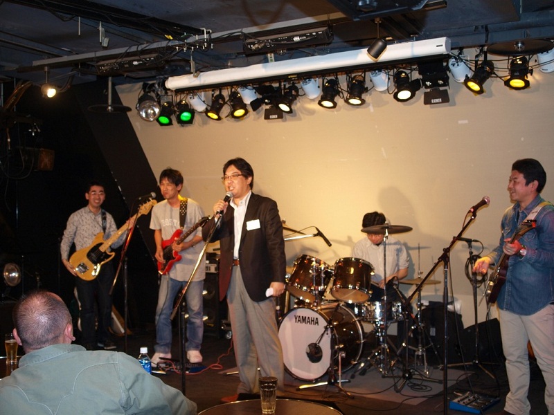 今回は、プロも出演するライブハウスを借り切り、事前に出演バンドを募集し、8バンド(写真参照)が演奏しました。久々のステージで、埃をかぶったギターを磨き、どのバンドも事前に入念に練習され、当時の懐かしいそれぞれの年代を反映した演奏で、大いに会を盛り上げました。日ごろ、会社生活、子育てなど音楽には疎遠になっていた方々も、久しぶりに会う先輩、後輩など学生時代に戻り、会の段取り、運営にも昔のまま上下関係が生かされ、これほどの大きい規模の会にしては、スムーズに行われました。