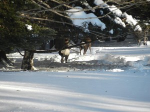 斜面のウラジロモミの木の下で体を休めたようで、今年は何度か2~5頭のシカ君たちが現れました。後ろ姿でごめんなさい。。。