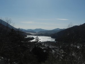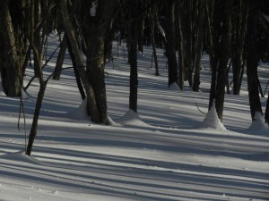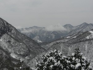 木々に凍りついた雪は重く、遠くの山々は寒さに身をひそめながらデン!と身動きせず流れる雲だけがそっとそっと移動します。春待ち風景?