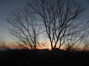 早朝に「いろは坂」を上ると、うっすらと赤い空がどんどんと色濃くなり、朝日が車を追いかけて来ました。