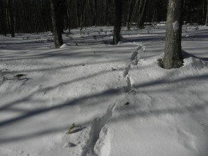 シカ君頑張ってるね。雪の中を食探しの足跡が続きます。