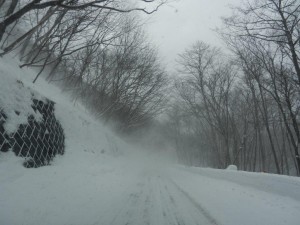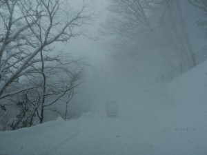 さて、18日から雪となった奥日光。20日の「いろは坂」は時折の突風に吹雪いて一瞬前が見えません。