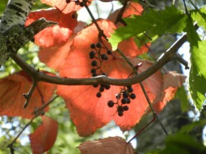 10月に入り、すでに色づいていたヤマブドウとツタウルシ。