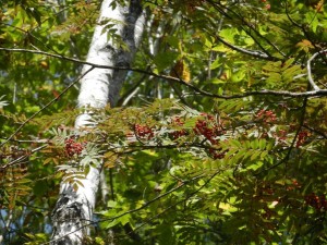 そろそろ色を変え始めた森の中、たわわに赤い実を付けているのはナナカマド。