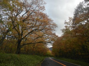 8日。竜頭の滝からの冷気は、滝上からの国道を見事な黄葉街道と変化させます。