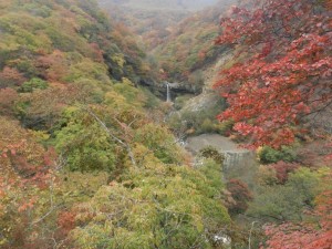 さて、下りいろは坂途中の「剣ヶ峰」から「般若の滝」を眺めます。