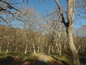 すでに小屋への小道は枯葉に埋まり冬枯れの森。
