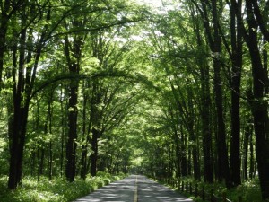 光徳街道も新緑のトンネル。