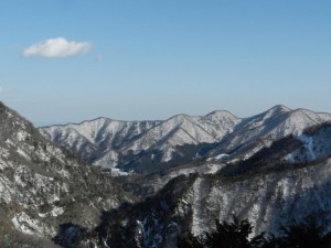 下りいろは坂からの山々は雪国の山並みになっていました。