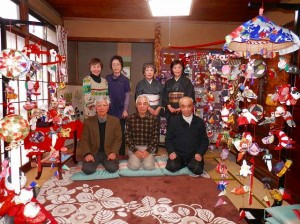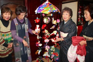 とくに一つの笠に100個もの鳥や動物や亀や毬などを昔の着物の生地を上手に使って美しく丁寧に縫って作り、可愛く吊るし、その傘が4個も5個も展示してあったのですから、不器用な私など気が遠くなるような作品ばかりでした。