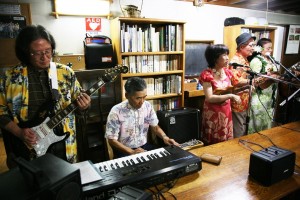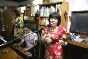 スチールギター、サイドギター、ボーカル、ウクレレ、フラの仲間が喜んで参加してくれた。
