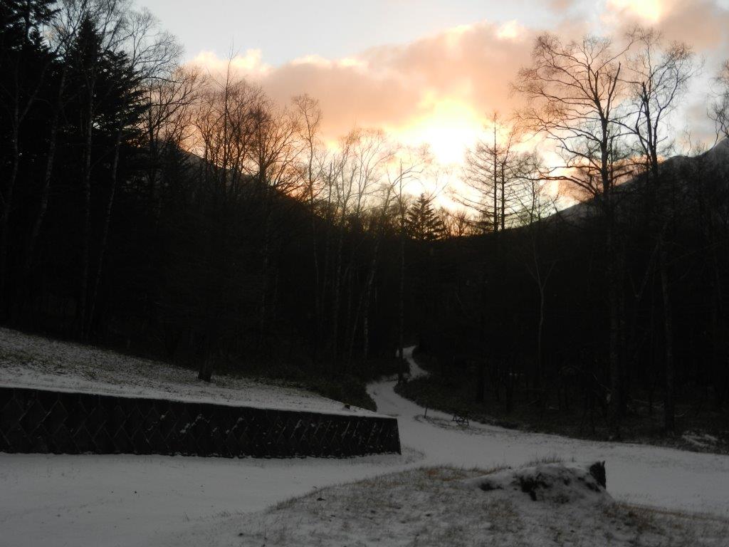 雪に覆われた小道の向こうを朝焼けが薄紅色に染めて。。。
