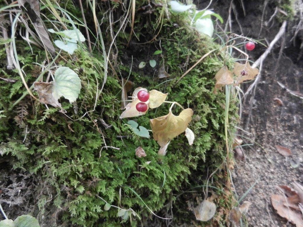 これも初めてのマイヅルソウの紅い実。ぷっくらとはちきれそうに膨らんでいました。
