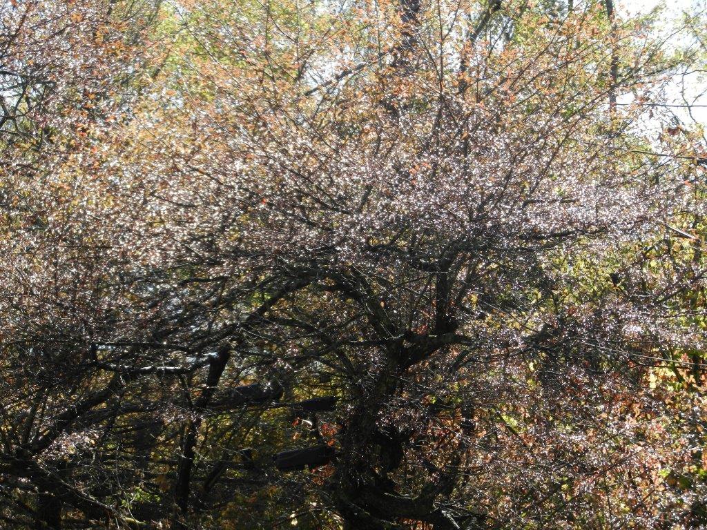 すでにズミの葉は落ちて、素早い紅葉のツタウルシが彩りを添えます。