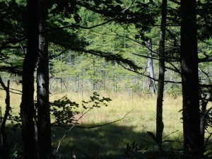 26日、小屋前の小湿原はうっすらと草紅葉。