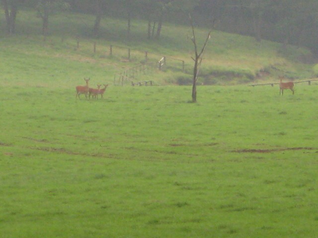 2010.08.10 全国支部:栃木桜友会 大笹牧場は鹿牧場? 霧降の隠れ家に住む鍋谷(S37政)です。霧降の先住民は鹿だったのも知れません。鹿たちは生存権を主張、春先に丹誠こめて育てた庭の植物を毎未明、食べにくるのです。この写真は義妹が8月3日に六方沢橋先の大笹牧場附近で撮影したもの。夏の時期なので青草が豊富で、鹿牧場の様相を呈しています。県内には推定1万頭の鹿が生息しており、十数年前の約2倍に上るそうです。鹿の食害は環境破壊の域に達し、県では捕獲作戦を繰り広げているが、個体数減には至っていない、と新聞は報じています。来春の霧降の庭が暴徒に蹂躙されないことをただただ願っています。