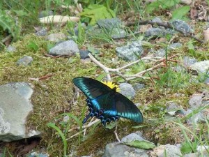 美しいミヤマカラスアゲハは、タンポポにとまって