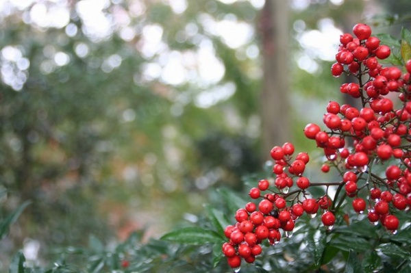 2010.05.05 全国支部:栃木桜友会 投稿写真の一例 (HP担当上野です。皆様方の投稿をお待ちしております。これは、その一例です)11月は当地方では紅葉の季節。雨上がりの庭先のナンテンです。冬になると小鳥たちの命を繋ぐ糧となる。 雨上がりの晩秋。ナンテンに雫がのこる。