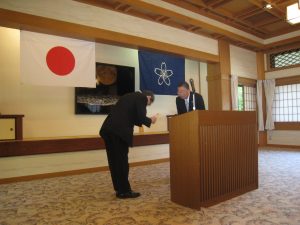 総会の終わりに今年も母校に寄付金を贈呈し、平野常務理事からは勢いのある学習院の現状について説明がありました。