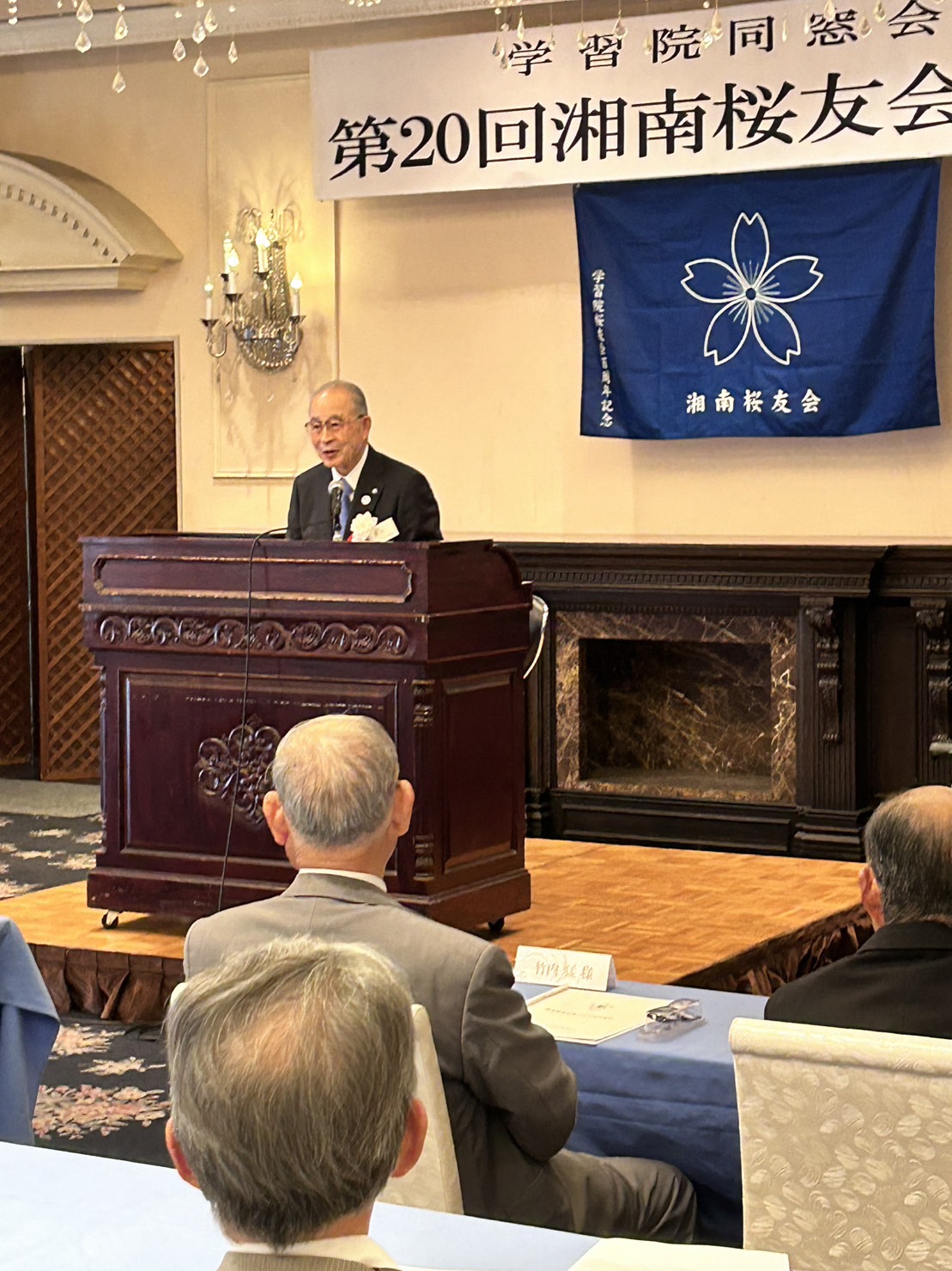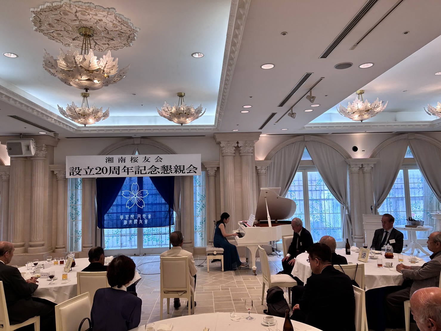 2023.05.21 全国支部:湘南桜友会 第20回総会・懇親会開催 第20回総会・懇親会開催 第20回総会は、5月20日、湘南鎌倉クリスタルホテルにて、ご来賓を含め 43 名のご出席をいただき4年ぶりに開催されました。今年は、湘南桜友会設立20周年にあたり、記念事業として、耀学習院院長をお招きし、講演いただきました。また、昼食後には、卒業生である加藤美季さんの素晴らしいピアノ演奏に、一同魅了されるひとときでした。そのほか、プロジェクターを利用した学習院の紹介や、会員の活動紹介、新入会員の自己紹介など、盛りだくさんの内容で、終始和やかな雰囲気の中、無事に閉会いたしました。
