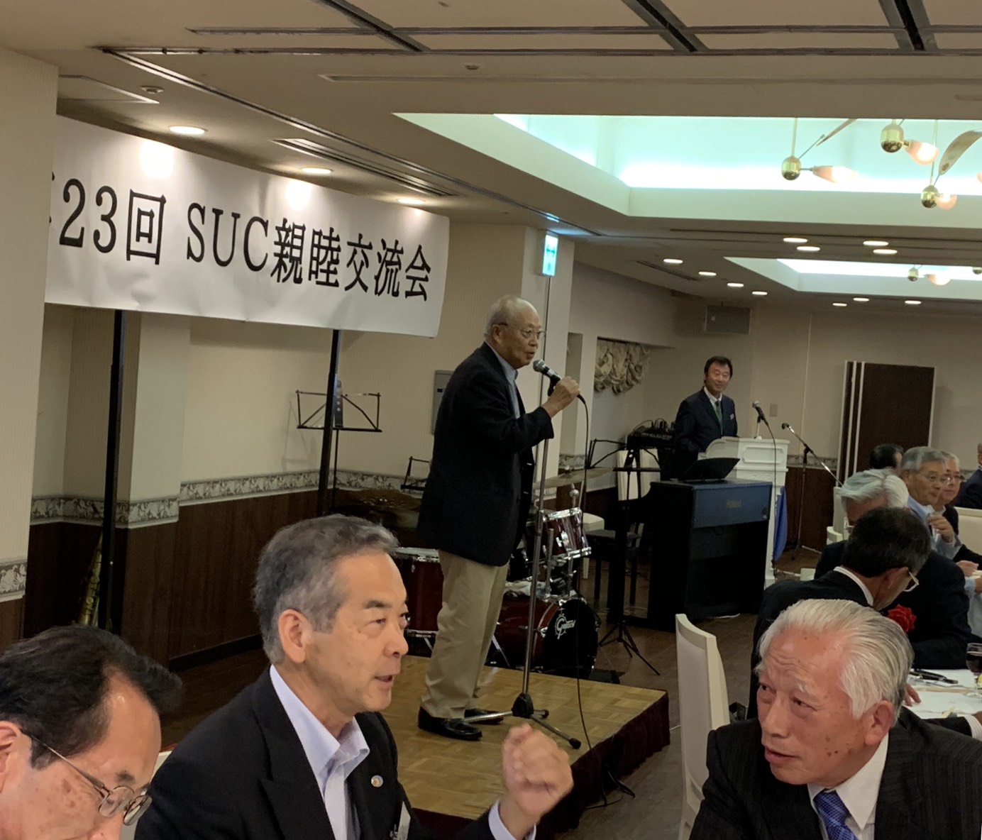 2019.10.15 全国支部:湘南桜友会 第23回SUC(湘南ユニバーシティクラブ)開催報告 令和1年度第23回SUC親睦交流会が、10月5日(土)湘南クリスタルホテルに於いて、青山学院大学校友会湘南支部を幹事校として開催され、参加者は17校128名でした。当校からは竹内名誉会長、内海会長始め8名が参加しました。来年度の幹事校は工学院大学校友会湘南支部の予定です。