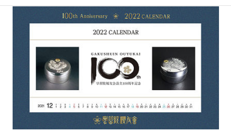 新年会において会員の皆様に抽選でお渡ししようと思っておりました桜友会2022年のカレンダーを先着20名様にプレゼントさせていただきたいと思います。今年のカレンダーのテーマは『ボンボニエールの世界』で、2019年にご好評いただいた桜友会カレンダー「皇室ゆかりのボンボニエール」には掲載されていない、令和のボンボニエールも掲載され、皆様の卓上を華やかに1年間を飾ってくれる物になっております。「ボンボニエール」とは皇室などの慶事に配られる小さな菓子器のことで、西欧諸国から明治22年に皇室にもたらされました。日本では容器に非常に凝った装飾が施される独自の発展をし、その製作を通して伝統工芸の技の継承と職人の保護育成が図られ、大変美しい美術品となってまいりました。現在でもこの慣習は継続されており、今上天皇の御即位の際にも配られました。