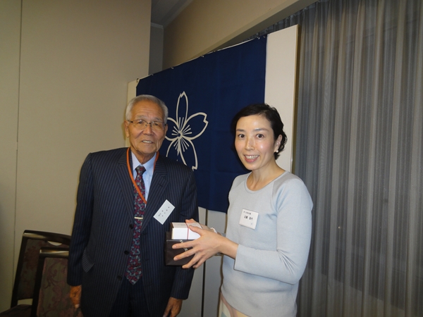 井元俊秀氏(昭和35年大政治)から近藤佳代氏へ記念品の贈呈