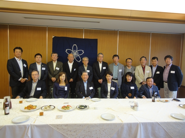 寺西良夫大会会長(昭和31年大政治卒、前列左から3人目)を囲んで参加者全員で記念撮影
