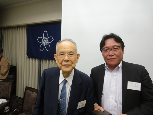 藤森大先輩から講師の後藤英俊氏(右)へ記念品の贈呈。