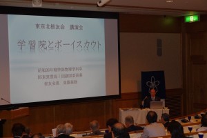 「記念講演会」では、桜友会長の東園基政様(昭和36年・物理学科卒)から「学習院とボーイスカウト」のご講演をいただきました。